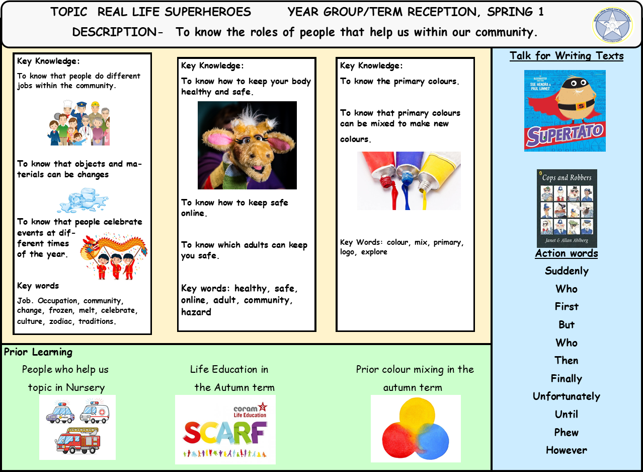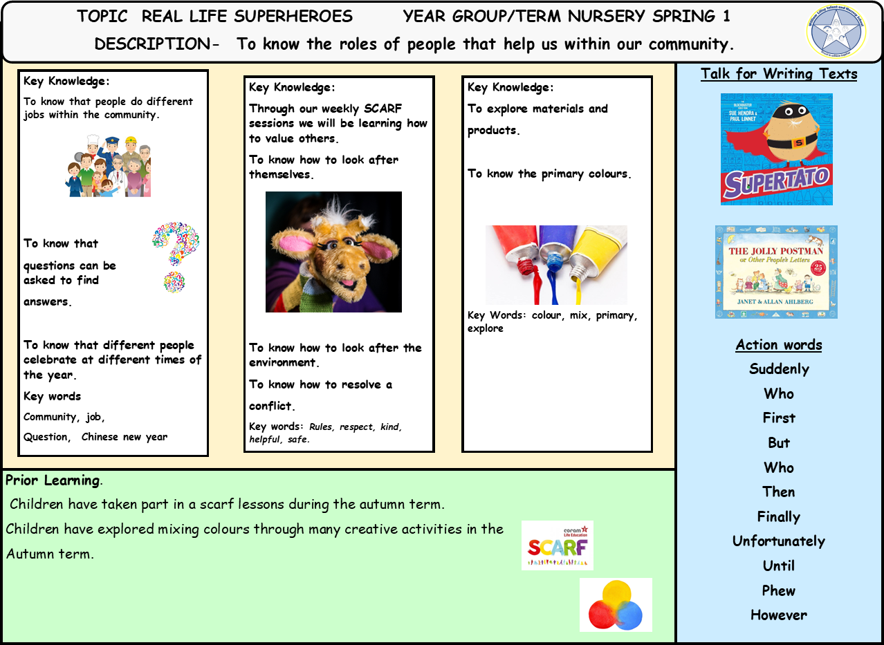 Here is an example of the knowledge organiser for a half-term for Nursery and Reception.